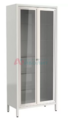 Сварная конструкция. Покрытие полимерно- порошковой краской. Установлен на регулируемые ножки. Верхняя секция с запирающимися дверцами и тремя регулируемыми полками из стали. Нижняя с запирающимися дверцами и полкой из стали. Габариты: (ШxГxВ)800x400x1900.