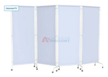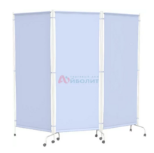 - Каркас выполнен из стальных труб с полимерно-порошковым покрытием. Заполнение - специальная медицинская ткань. Изделие установлено на колеса. Ширма легко регулируется поворотными сворками, за счет складывания которых ширма трансформируется в одно-, двух- и трехстворчатую конструкцию. Складная конструкция экономит полезное пространство.