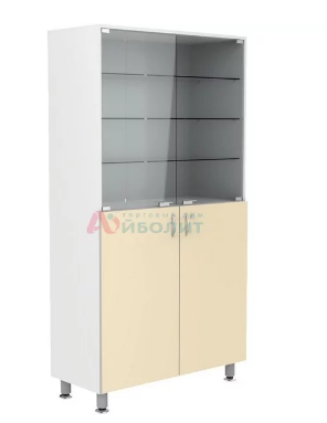 - Выполнен из влагостойкой ЛДСП. Верхняя секция - ниша с тремя полками и дверками из стекла. Нижняя секция закрыта глухими дверками, запираемыми на замок, внутри - 1 полка. Установлен на регулируемые ножки. Стандартное исполнение: Цвет корпуса - белый. Цвет фасадов - по выбору, согласно палитре производителя. Поставляется в разобранном виде.
