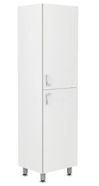 - Выполнен из влагостойкой ЛДСП. Верхняя и нижняя секции закрыты глухими дверками, запираемыми на замок. Внутри секций расположены полки из влагостойкой ЛДСП: верх - 3 полки, низ - 1 полка. Установлен на регулируемые ножки. Стандартное исполнение: Цвет корпуса - белый. Цвет фасадов - по выбору, согласно палитре производителя. Поставляется в разобранном виде.