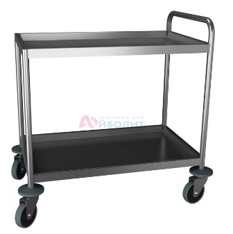 - Стол изготовлен из нержавеющей стали и представляет собой каркас и две полки. Полки с ограждениями с четырех сторон предохраняют от случайного падения. Для удобства перемещения стол снабжен обрезиненными поворотными колесами диаметром 125мм, два из которых оборудованы блокировкой вращения и поворота.