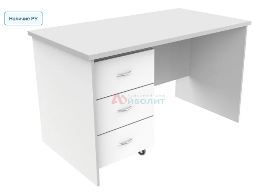 - Стол выполнен из влагостойкой ЛДСП. Комплектуется подкатной тумбой. Цвет товара — белый, другие цвета - по согласованию. При выборе другого цвета ЛДСП стоимость товара может быть увеличена. Поставляется в разобранном виде.