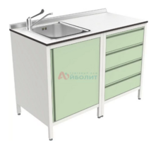 - Мойка состоит из тумб, столешницы из пластика толщиной 14 мм и мойки 1-но чашевой.