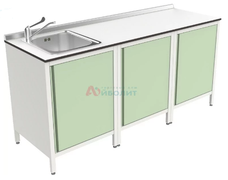 - Мойка состоит из тумб, столешницы из пластика толщиной 14 мм и мойки 1-но чашевой.