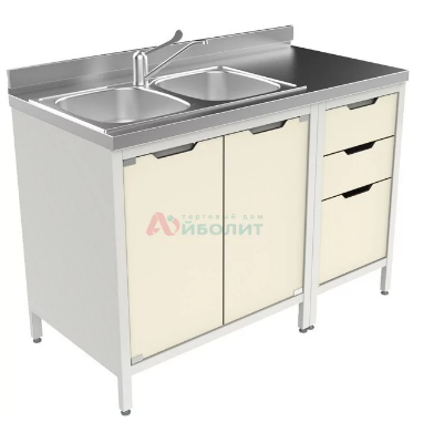 - Мойка состоит из тумб, столешницы из нержавеющей стали и мойки 2-х чашевой.