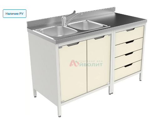 - Мойка состоит из тумб, столешницы из нержавеющей стали и мойки 2-х чашевой.