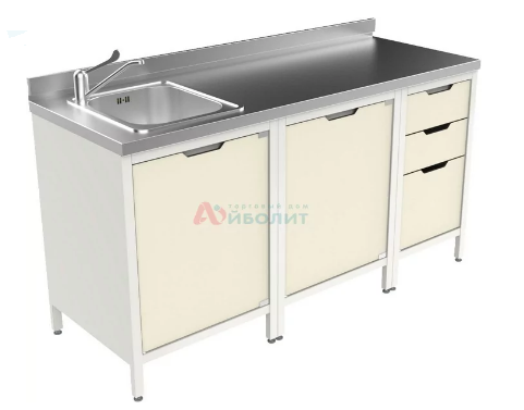 - Мойка состоит из тумб, столешницы из нержавеющей стали и мойки 1-но чашевой.