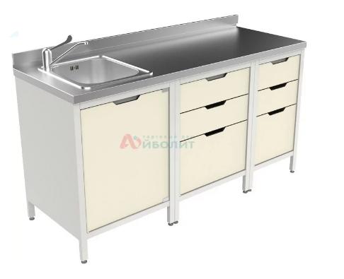 - Мойка состоит из тумб, столешницы из нержавеющей стали и мойки 1-но чашевой.