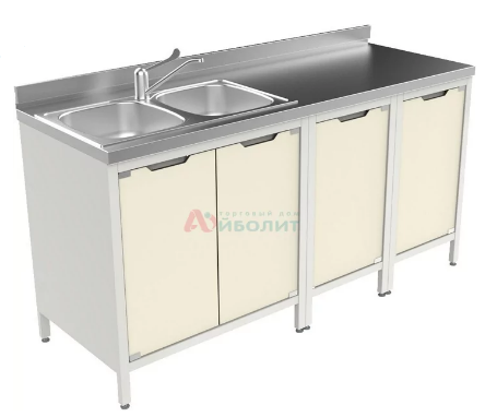 - Мойка состоит из тумб, столешницы из нержавеющей стали и мойки 2-х чашевой.