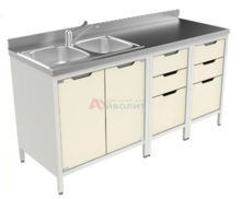 - Мойка состоит из тумб, столешницы из нержавеющей стали и мойки 2-х чашевой.
