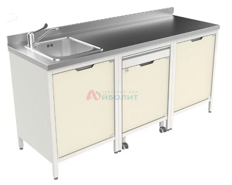 - Мойка состоит из тумб, подкатной тумбы, столешницы из нержавеющей стали и мойки 1-но чашевой.