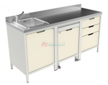 - Мойка состоит из тумб, подкатной тумбы, столешницы из нержавеющей стали и мойки 1-но чашевой.