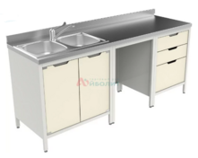 - Мойка состоит из тумб, подкатной тумбы, столешницы из нержавеющей стали и мойки 1-но чашевой.