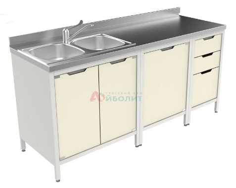 - Мойка состоит из тумб, столешницы из нержавеющей стали и мойки 2-х чашевой.