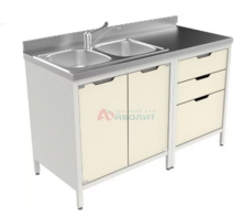 - Мойка состоит из тумб, столешницы из нержавеющей стали и мойки 2-х чашевой.
