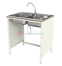 Мойка с тумбой, посредине 4 ящика, справа открытая секция с полкой. Каркас выполнен из алюминия.