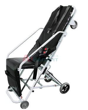 - Носилки кресельные, совмещают в себе функции трех изделий: носилок, кресла и тележки. Носилки снабжены колесными опорами: одна- в изголовье, вторая - в ножной части и третья - на складном шасси. Шасси выполняет функцию дополнительной опоры, уменьшая нагрузку на санитаров при выгрузке и транспортировке пациента в положении «лежа».