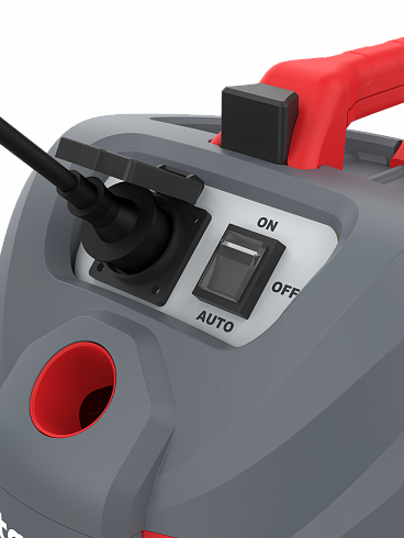 - Многофункциональный пылесос с большим (20 л) баком, для сбора пыли и жидкости. Имеет розетку для работы с электроинструментом. Может использоваться без мешка. С функцией выдува воздуха и системой очистки фильтра "Press & Clean"