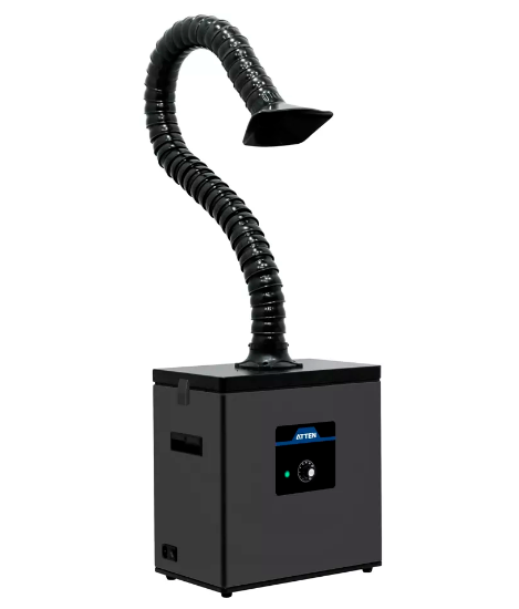 - Дымоуловитель Atten ST-1101 – профессиональное решение для эффективной очистки воздуха при промышленной пайке. Оборудование оснащено высокопроизводительной системой фильтрации с тремя сменными фильтрами (предварительным, средним и основным), за счет чего обеспечивает уровень очистки до 99,97%.