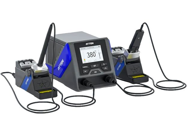 - Обновленная ревизия интеллектуальной паяльной станции GT-6200, отличается новым цветным дисплеем с подсветкой и антистатической (ESD) защитой. Также в комплект входят более компактные подставки для инструментов с губками для ухода за паяльными жалами. Высокая максимальная мощность обеспечивает хорошую производительность при работе с теплоемкими компонентами и вкупе с функцией автоматического определения подключаемого инструмента предоставляет дополнительную гибкость при использовании. За счет возможности подключения демонтажного пистолета устройство удобно использовать не только на этапах сборки электронных устройств, но и при ремонте или прототипировании.